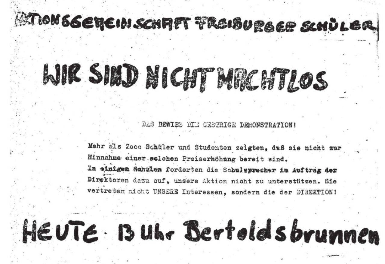 Zunächst wird der Dokumentarfilm UM 13 UHR AM BERTOLDSBRUNNEN (Deutschland 1988 | Regie: Peter Adler | dt. OF | 45 Min.) vorgeführt. Der Film beschäftigt sich mit dem Beginn des ersten großen Nachkriegsprotests im Februar 1968 in Freiburg. Die Demonstrationen von Schüler*innen, Student*innen und jungen Auszubildenden gegen eine Fahrpreiserhöhung um 10 Pf. dauerten eine Woche und wurden letztlich niedergeknüppelt. Wie kam es zu dieser 68er – Revolte, der sich im Laufe der nächsten Jahre immer mehr junge Menschen aus Schule, Lehre und der Uni anschlossen? Wie wichtig war die Auseinandersetzung mit der Elterngeneration und der NS- Zeit dabei? Welches waren die zentralen Themen der Zeit, was unterschied die 68er von früheren politischen Bewegungen wie der Ostermarschbewegung? Was waren die Veränderungen in der Gesellschaft der BRD nach 68?