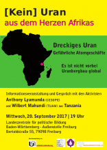 [Kein] Uran aus dem Herzen Afrikas Mittwoch, 20.09.17 um 19:00 Uhr Informationsveranstaltung und Gespräch mit den Aktivisten lpb, Bertoldstraße55