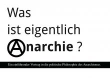 Was ist eigentlich Anarchie und was wollen die Anarchisten? Donnerstag, 26.10.17 um 19:00 Uhr Ein einführender Vortrag in die politische Philosophie des Anarchismus Büro für GRENZENLOSe Solidarität Grenzenlos