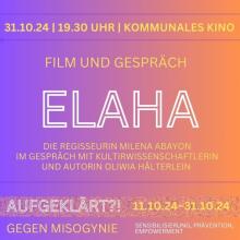 Film Elaha – zu Gast: Filmemacherin Milena Abayon und Autorin Oliwia Hälterlein Donnerstag, 31.10.24 um 19:30 Uhr - Do., 31.10.2024 - 21:00 im Rahmen des Aktionsmonats Aufgeklärt?! gegen Misogynie KoKi