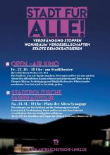 Open-Air Kino Freitag, 23.10.20 um 18:00 Uhr - Fr., 23.10.2020 - 21:00 STADT FÜR ALLE! Verdrängung stoppen. Wohnraum vergesellschaften. Städte demokratisieren. Stadttheater Freiburg