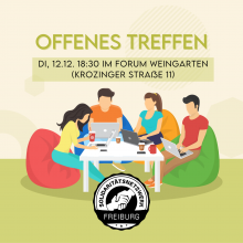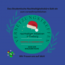 Vernetzungstreffen für Nachhaltigkeit Dienstag, 12.12.23 um 19:00 Uhr vom Studentischen Nachhaltigkeitsbüro Blauen Fuchs (Metzgerau 4, 79098 Freiburg)