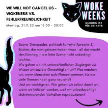 We Will Not Cancel Us – Wokeness vs. Fehlerfreundlichkeit Montag, 21.11.22 um 18:00 Uhr - Mo., 21.11.2022 - 20:00 Veranstaltung der Woke Weeks Block 2: Ausgrenzung aushebeln KTS - Kulturtreff in Selbstverwaltung (KaTS)
