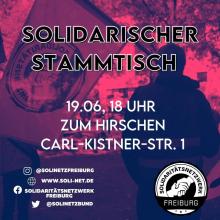 Am Montag findet wieder der monatliche solidarische Stammtisch des Soli Netz statt! Bei solidarischer Atmosphäre und was zu Trinken tauschen wir uns über unser Leben in Freiburg, in unsere Nachbarschaft und unseren Jobs/Unis/Ausbildungsstätten aus.