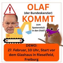DEMO: OLAF KOMMT! - Zum Spatenstich in den Dieti! Dienstag, 27.02.24 um 10:00 Uhr - Di., 27.02.2024 - 13:00 Glashaus Rieselfeld