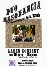 Konzert: Duo Resonancia Samstag, 16.02.19 um 16:00 Uhr Latin American Folk & Roots from the Andes Unicorn Music Hinterhof