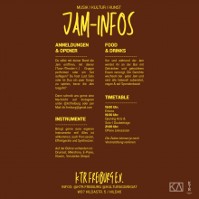 Jammsession mit Opening Acts Donnerstag, 16.05.24 um 19:30 Uhr Dabei gibt es immer wechselnde vegane Gerichte an der Bar für wenig Geld oder auf Spendenbasis Kulturaggregat / Hilda5