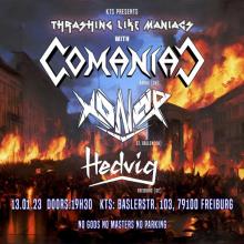 KONZERT : COMANIAC//HONOR//HEDVIG Freitag, 13.01.23 um 20:00 Uhr - Fr., 13.01.2023 - 23:59 Thrash Metal Konzert in der KaTS Freiburg KTS - Kulturtreff in Selbstverwaltung (KaTS)