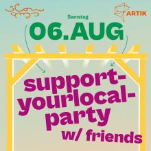 Pergola Open Air - supportyourlocalparty w/friends Samstag, 06.08.22 um 18:30 Uhr - Sonntag, 07.08.22 um 05:00 Uhr ArTik // Freizeichen