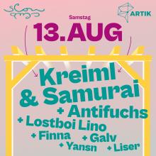 Pergola Open Air - Kreiml&Samurai, Antifuchs, Lostboi Lino, Finna, Galv, Liser, Yansn Samstag, 13.08.22 um 15:30 Uhr - Sa., 13.08.2022 - 22:00 ArTik // Freizeichen