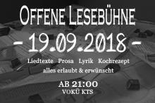 Offene Lesebühne Mittwoch, 19.09.18 um 21:00 Uhr Nach der Voküfa wird es wieder eine neue Auflage der "Offenen Lesebühne" geben... KTS - Kulturtreff in Selbstverwaltung (KaTS)