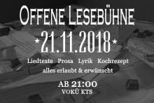 Offene Lesebühne Mittwoch, 21.11.18 um 21:30 Uhr Nach der Voküfa wird es wieder eine neue Auflage der "Offenen Lesebühne" geben... KTS - Kulturtreff in Selbstverwaltung (KaTS)