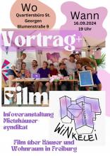 Wohnprojekt Winkelei Montag, 16.09.24 um 19:00 Uhr Vortrag und Film - Infoveranstaltung Mietshäusersyndikat Quartierstreff St. Georgen