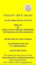 Menschen-Kette: GEGEN DEN HASS Samstag, 20.01.24 um 12:30 Uhr OMAS GEGEN RECHTS Freiburg Platz der Alten Synagoge