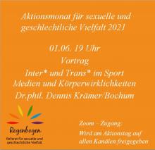 (online) Inter* und Trans* im Sport. Medien- und Körperwirklichkeiten Dienstag, 01.06.21 um 19:00 Uhr Vortrag von Dennis Krämer