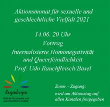 (online) Internalisierte Queerfeindlichkeit Montag, 14.06.21 um 20:00 Uhr Vortrag von Prof. Udo Rauchfleisch