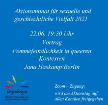 (online) Femmefeindlichkeit in queeren Kontexten Dienstag, 22.06.21 um 19:30 Uhr Vortrag von Jana Haskamp