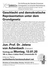 Geschlecht und demokratische Repräsentation unter dem Grundgesetz Montag, 13.01.20 um 18:00 Uhr Jun.-Prof. Jelena von Achenbach (Giessen) - Vortrag Haus zur Lieben Hand