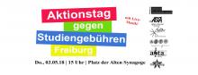 Aktionstag gegen Studiengebühren! // Protest Against Study Fees! Donnerstag, 03.05.18 um 15:00 Uhr anlässlich des Jahrestages der Einführung der Studiengebühren in Baden-Württemberg Platz der Alten Synagoge