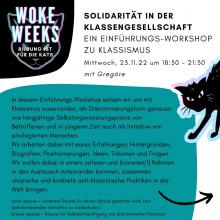 Solidarität in der Klassengesellschaft – Ein Einführungs-Workshop zu Klassismus Mittwoch, 23.11.22 um 18:30 Uhr - Mi., 23.11.2022 - 21:30 Veranstaltung der Woke Weeks Block 1: Langfristig aktiv sein KTS - Kulturtreff in Selbstverwaltung (KaTS)