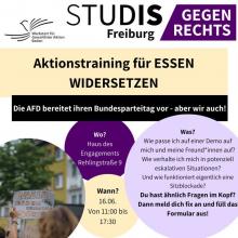 Aktionstraining für ESSEN WIDERSETZEN Sonntag, 16.06.24 um 11:00 Uhr - So., 16.06.2024 - 17:30 Die AFD bereitet ihren Bundesparteitag vor - aber wir auch! Haus des Engagements