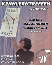 Wer uns das Abtreiben verbieten will und warum Dienstag, 10.10.23 um 18:30 Uhr - Di., 10.10.2023 - 20:30 Kennlerntreffen der Internationalen Jugend mit einem Input zum Thema Abtreibung Konradstraße 14 - Jugendhilfswerk jhw