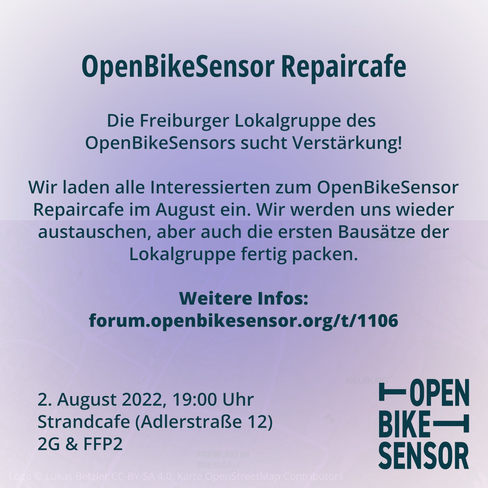 Es ist wieder soweit. Dienstag abend (2.8.) gibt es das nächste OpenBikeSensor-Repaircafé im Strandi in Freiburg. http://forum.openbikesensor.org/t/1106