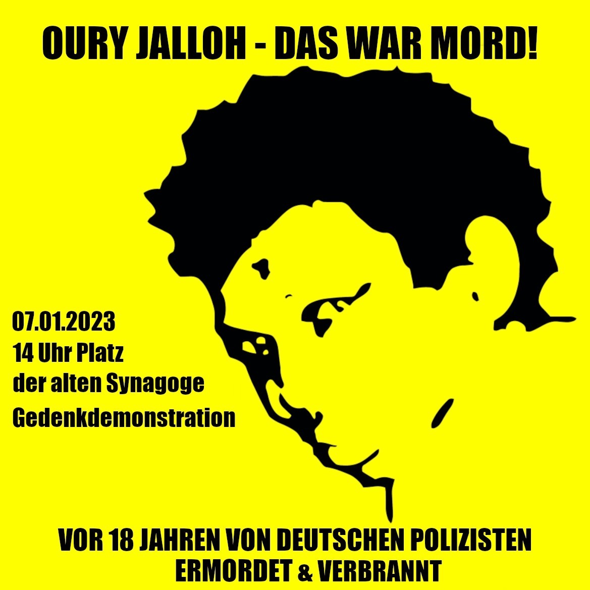 18 Jahre sind vergangen, seit Oury Jalloh aus Sierra Leone am 07.01.2005 von Polizisten auf