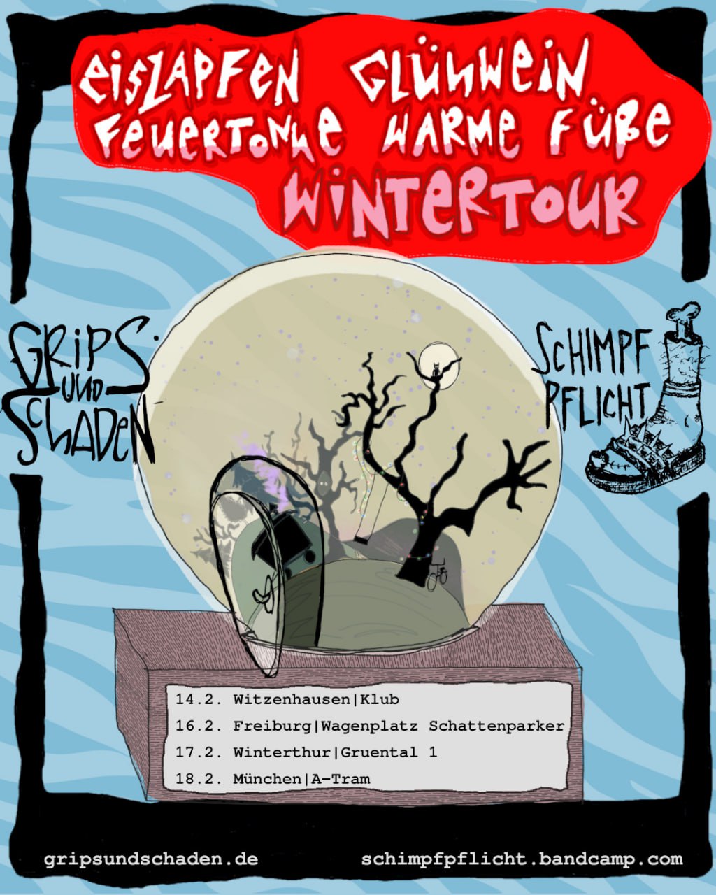 Das Konzert findet drausen statt! Wir haben warmes Wasser für eure mitgebrachten Wärmflaschen. Und es wird Punch und Glühweingeben ;-)