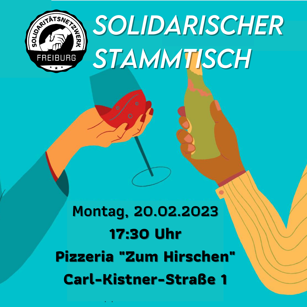 Bei unserem Solidarischen Stammtisch werden wir uns in freundlicher Atmossphäre darüber austauschen, wie uns der Kapitalismus ständig das Leben schwer macht und wie wir uns dagegen wehren können.
