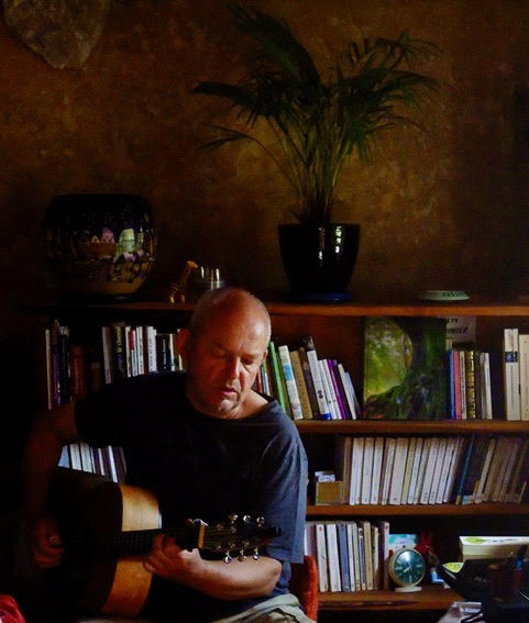 Mit verschiedenen Gitarren und charakteristischer Stimme gestaltet Erdmut Rex seine Konzerte...