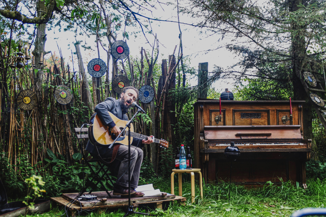 After studying Fine Art in the west of England he relocated to Ireland to live and work on his family’s remote farm. Whilst waiting for large oil paintings to dry he began making music with acoustic guitars, the family piano, barn doors, brooms and chains. Long stories evolved. Later he moved to Germany and soon his lyrical, narrative songs bore the influence of the fields of County Cork and the old streets of Berlin. Images of persecution abound, songs of urgent travel and a search for home - the unifying theme is that of grave drama within ‘The Great Park’.