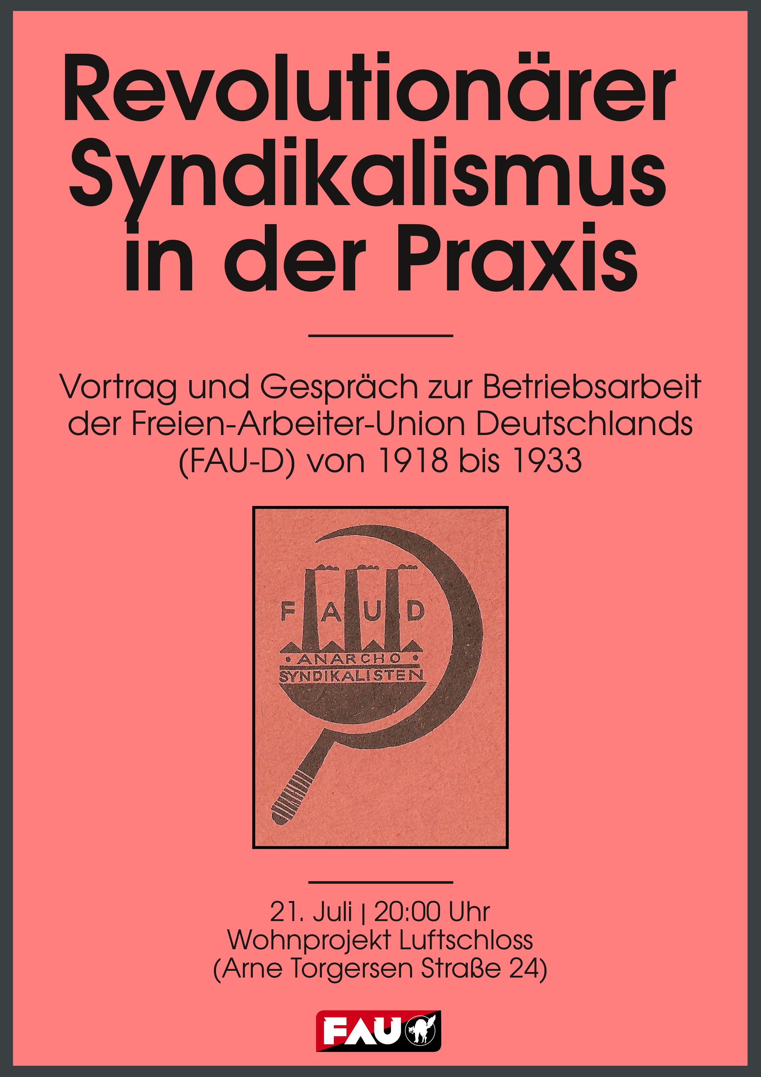 Vortrag und Gespräch zur Betriebsarbeit und Frauenpolitik der Freien-Arbeiter-Union Deutschlands (FAU-D) von 1918 bis 1933