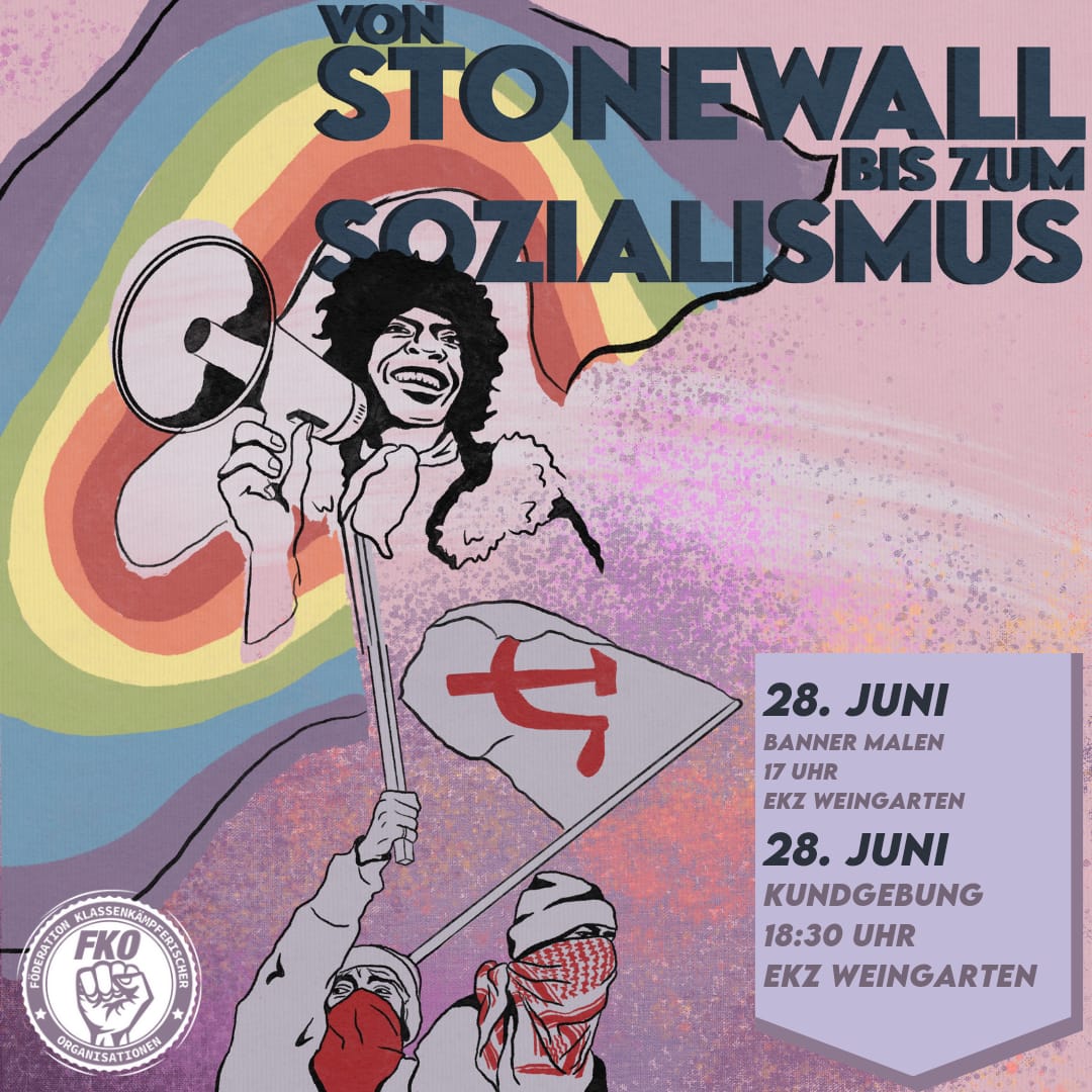 Für uns als Föderation Klassenkämpferischer Organisationen bedeutet dieser Tag mehr als nur den Bestreiter:innen dieses historischen Ereignisses zu gedenken. Denn auch wenn seit 1969 schon einiges erreicht werden konnte, wie die Entkriminalisierung von Homosexualität in vielen Ländern oder die teilweise mögliche Änderung von Name und Geschlecht für trans und inter Personen, so ist die wirkliche LGBTI+ Befreiung noch lange nicht erreicht.