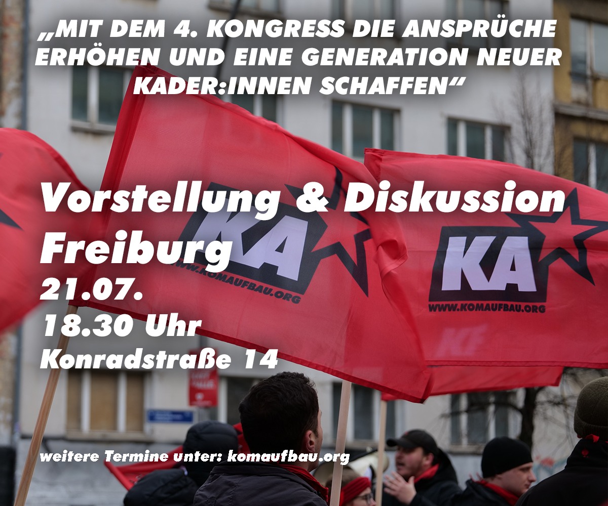 Dieser Verantwortung haben sich die Delegierten des 4. Kongress des Kommunistischen Aufbaus im Frühjahr dieses Jahres gestellt. Die Ergebnisse davon würde wir euch gerne vorstellen und mit euch diskutieren.