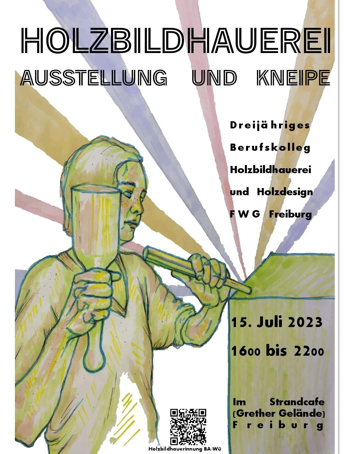 Holzbildhauerei Ausstellung der FWG Freiburg des dreijährigen Berufskollegs für Holzbildhauerei und Holzdesign im Strandcafé am 15.7.2023 von 16-22:00 Uhr bei ausgewählten Getränken und Häppchen (solange der Vorrat reicht).