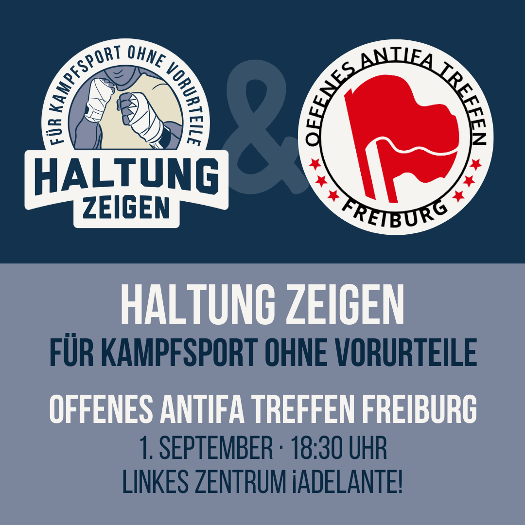 Wir wollen mit euch den Kurzfilm "Haltung zeigen - für Kampfsport ohne Vorurteile" anschauen und im Anschluss mit zwei erfahrenen Kamfpsportlern (gemeinsam mehr als 20 Jahre Mattenerfahrung in verschiedensten Gyms und Kampfsportarten) verschiedene Fragen diskutieren rund um das politische Feld des Kampfsports.