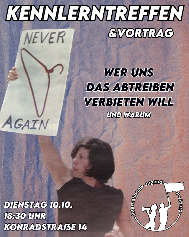 Passend dazu, veranstalten wir am Dienstag, den 10.10. unser Kennlerntreffen mit einem spannenden Vortrag zum Thema: “Wer uns das Abtreiben verbieten will und warum”.