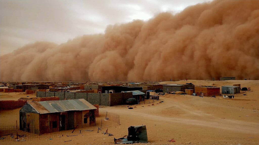 Sleiman Labats Film besteht aus fünf Kapiteln von unterschiedlicher Länge und aus verschiedenen Blickwinkeln, die keiner logischen oder chronologischen Reihenfolge folgen, sondern sich an der einen oder anderen Stelle zufällig verbinden und neu verknüpfen. Diese nichtlineare Erzählweise ist die Art und Weise, wie der Künstler seine Methoden des Erzählens dekolonisiert. Die Widersprüchlichkeit der Kapitel ähnelt dem Rhythmus des Sandsturms: Er baut sich auf und bricht mehrmals zusammen, dann tobt er wieder laut, bevor er in eine Totenstille mündet, um dann wieder zu tosen. Und das gibt den Ton für den ganzen Film an.