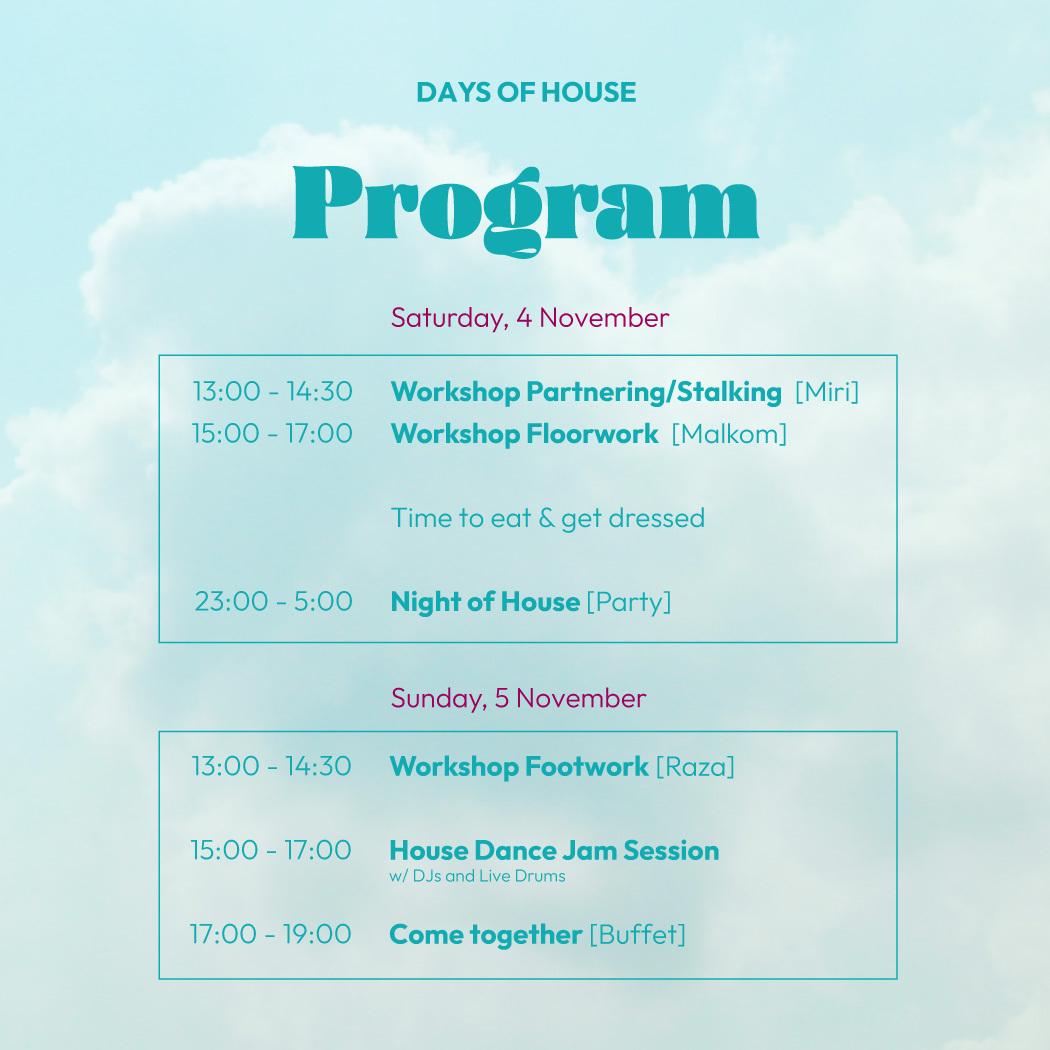 We offer you three totally different House Dance Workshops for ALL LEVELS, so just come through and dance with us! Register now via email days.of.house@gmail.com and save your spot as soon as possible! (Limited spots only!)