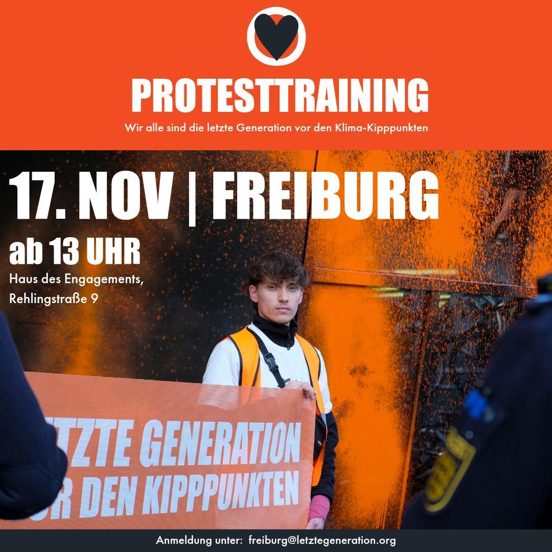 Meldet euch gerne bei mir auf signal oder freiburg@letztegeneration.org, wenn ihr beim Training dabei sein wollt.