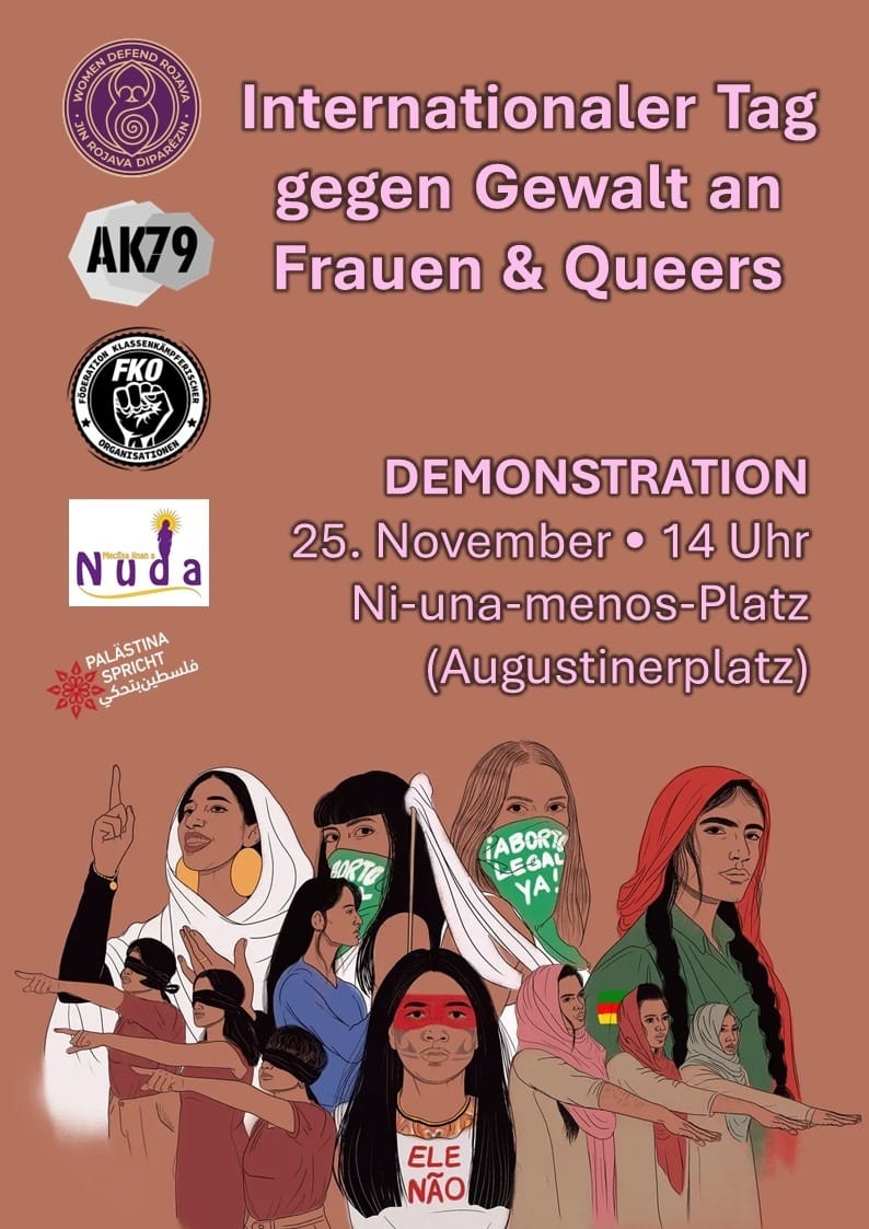 Am 25. November, dem internationalen Tag gegen Gewalt an Frauen und Queers, erheben wir unsere Stimmen gegen die Unterdrückung, die Ausbeutung und die Gewalt, die das Patriarchat und der Kapitalismus auf die Frauen dieser Welt ausüben. Wir rufen zu einer Demonstration auf, denn es ist an der Zeit, dass wir uns erheben und gemeinsam für eine bessere Welt kämpfen!