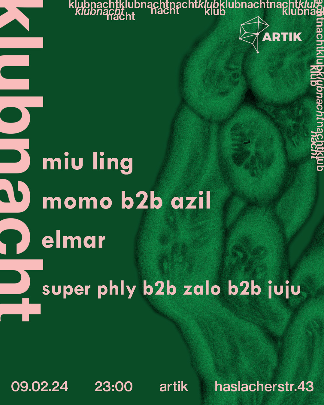 next Klubnacht this year. This time with well-known local Miu Ling, special guests MOMO, AZIL & Elmar from Leipzig based collective MANIAC and on the other floor Superphly, Zalo & Juju for finest House & Disco music.