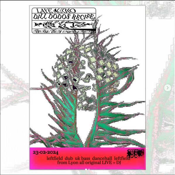 We’re thrilled to announce that we’ve teamed up with the Lyon-based imprint Dill Dodos Recife for a Label Showcase. Our guests inhabit a rhizomatic network of influences, spanning a range of genres: Dancehall, Electro, Hip Hop? Sure. Techno? No doubt. Dubstep? Absolutely. They are, in their own words “fueled by reflections on club music. This machine is driven by the desire to find sounds that combine elements extracted from different fields of electronic music. It’s the search for a sound that lies at the crossroads of styles.” Get ready for 2 live sets, 2 DJ sets, and support from LAYE AUDIO friends @miroslavwxyz & @pia_baru