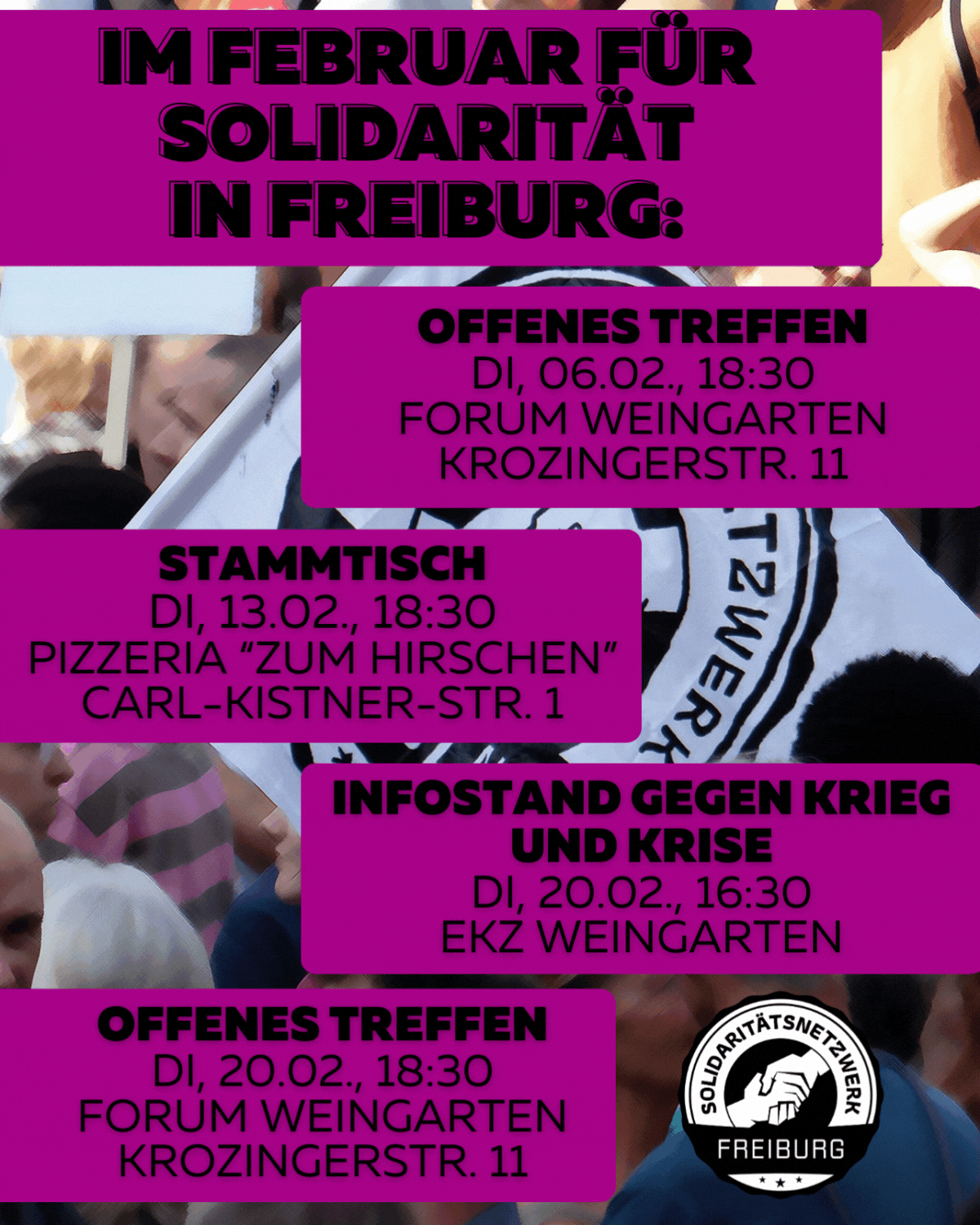 Am Diestag findert unser nächster solidarischer Stammtisch. Da wollen wir in lockerer solidarischer athmossphäre ein bisschen zusammensitzen und darüber reden, wie sich die politische Lage entwickelt und was uns zur Zeit so beschäftigt :)