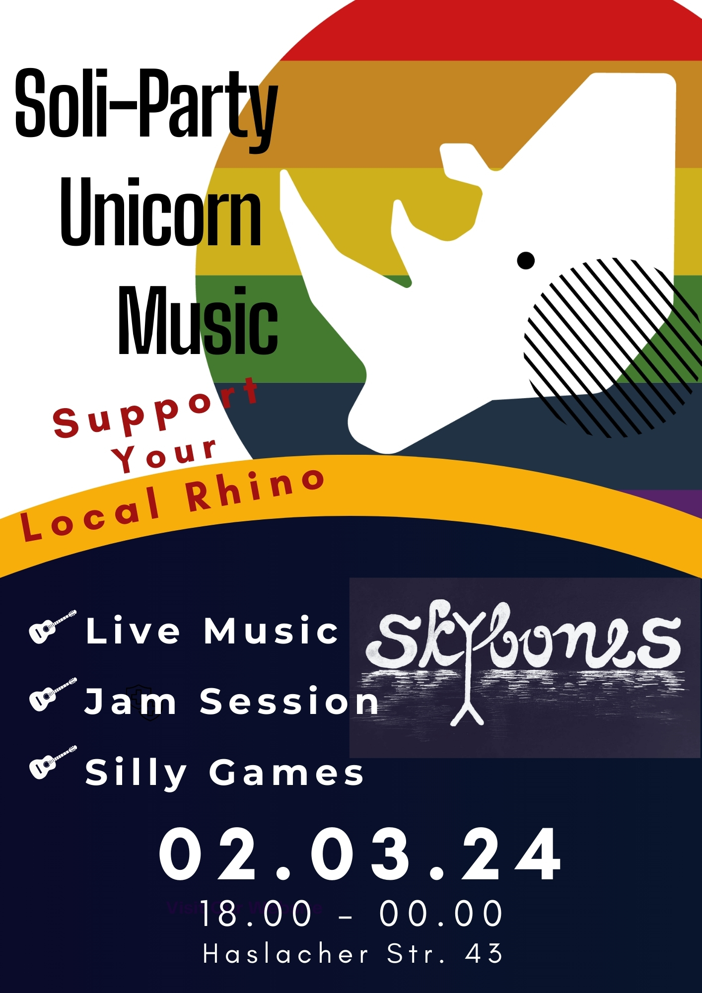2023 was a difficult year and Unicorn Music was no exception. Rhino and his crew have been there for musicians and artists of Freiburg since 5 years. Now they are in need of some support! We are in this together and are raising money for the store to go on. There will be live music from our "houseband" Skybones und after that a righteous jam session for everyone who wants to join in. Come a long for an unforgettable night!