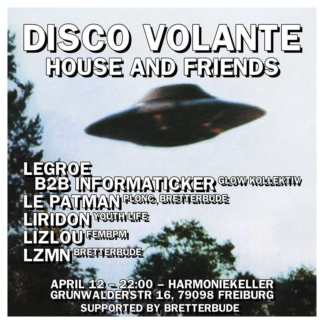 Die Ufos landen zur Disco Volante am 12.4.24 im Harmoniekeller Freiburg.