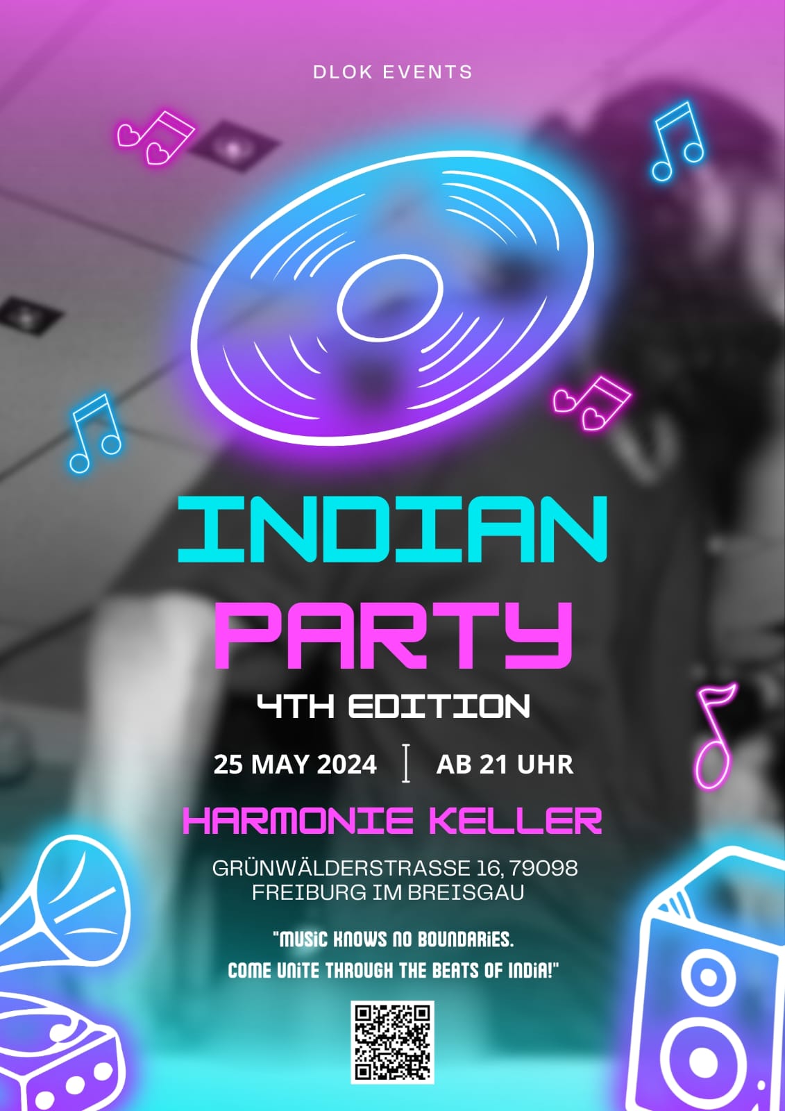 Join us for an unforgettable night of Indian music and dance! DLOK, a student-led venture in Freiburg, is hosting its next Indian party at Harmonie Keller on 25th May from 9 PM. Dance to the greatest Indian music from all over the country!
