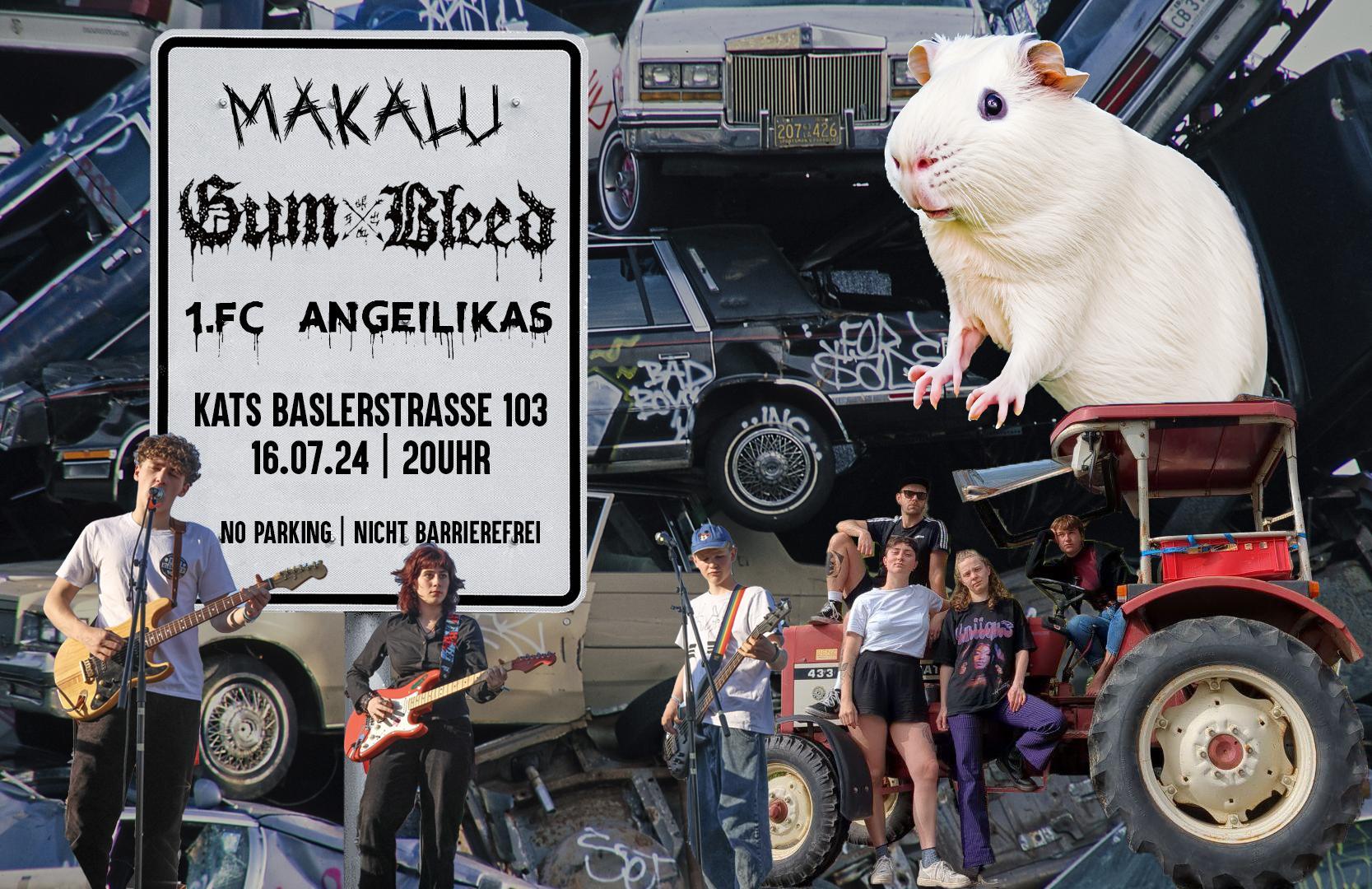 Am 16. Juli gibt es Grund zu feiern: Es ist schließlich der Ehrentag des Meerschweinchens! Also packt die Krallenschere und ne Snack-Karotte ein und kommt in die Kats. Euch erwarten putzige friends und drei grandiose Bands. Den Anfang machen MAKALU aus Karlsruh mit Punk, Rock und Politik. Anschließend könnt ihr mit fiepsigen Fangesängen dem 1. FC ANGEILIKAS im Heimspiel zujubeln. Danach werden die weitangereisten GUMBLEED aus Peking euch feinsten Punk mit viel Energie und einer Prise Skaten präsentieren.