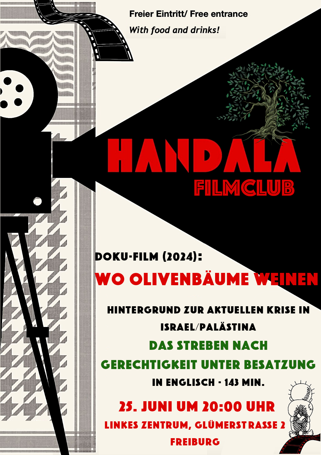 Description: Where Olive Trees Weep (in ENG - 143 min) offers a searing window into the struggles and resilience of the Palestinian people under Israeli occupation. Following Palestinian journalist and therapist Ashira Darwish, grassroots activist Ahed Tamimi and others, the film explores the themes of loss, trauma, and the quest for justice. Through the veil of oppression, we catch a glimpse of the resilience — the deep roots that have carried the Palestinian people through decades of darkness and shattered lives.
